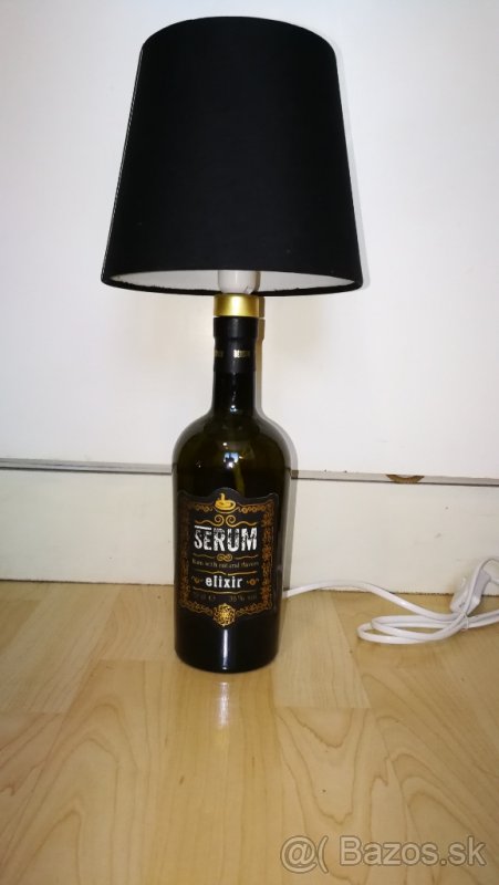 Luxusná, ručne vyrobená lampa z fľaše Rum Serum Elixir. Vhodná ako darček alebo doplnok do kaviarne či baru.