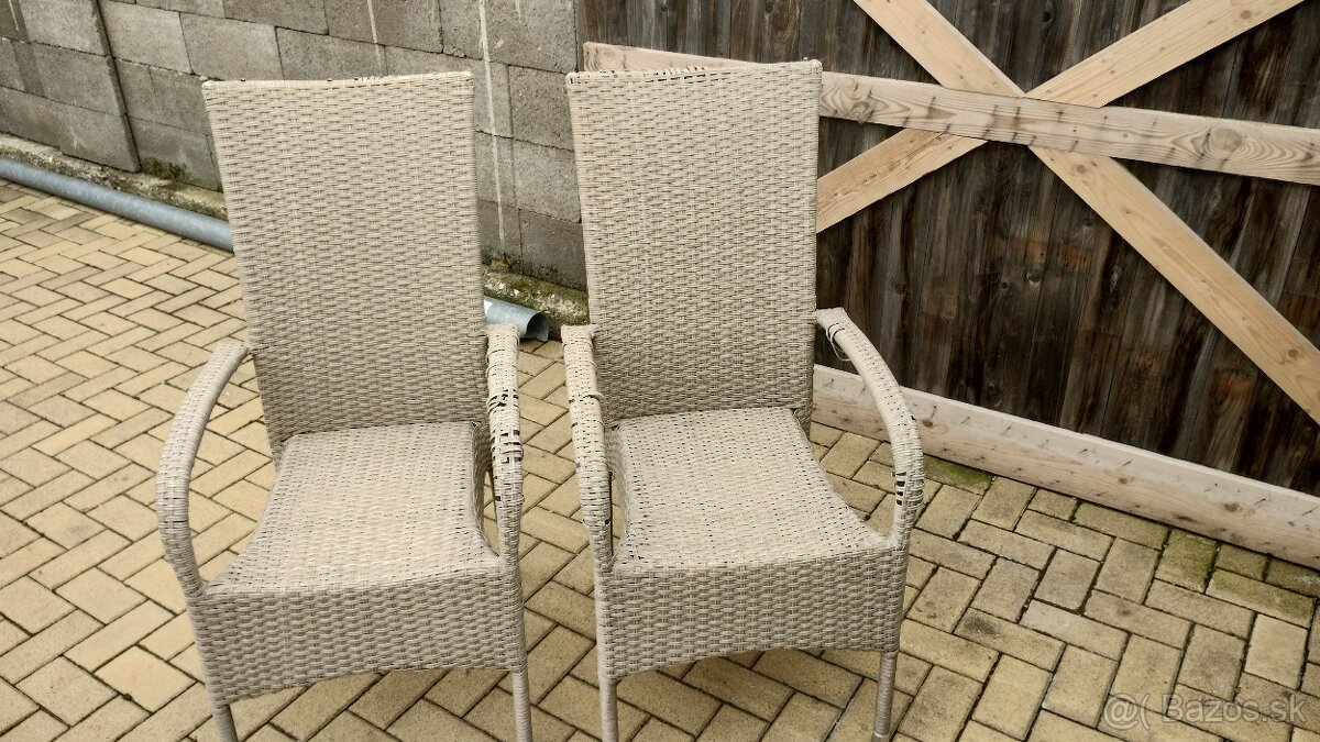 Vymením dve stoličky záhradné. Farba béžová, materiál umelý ratan za zrnkovu kávu