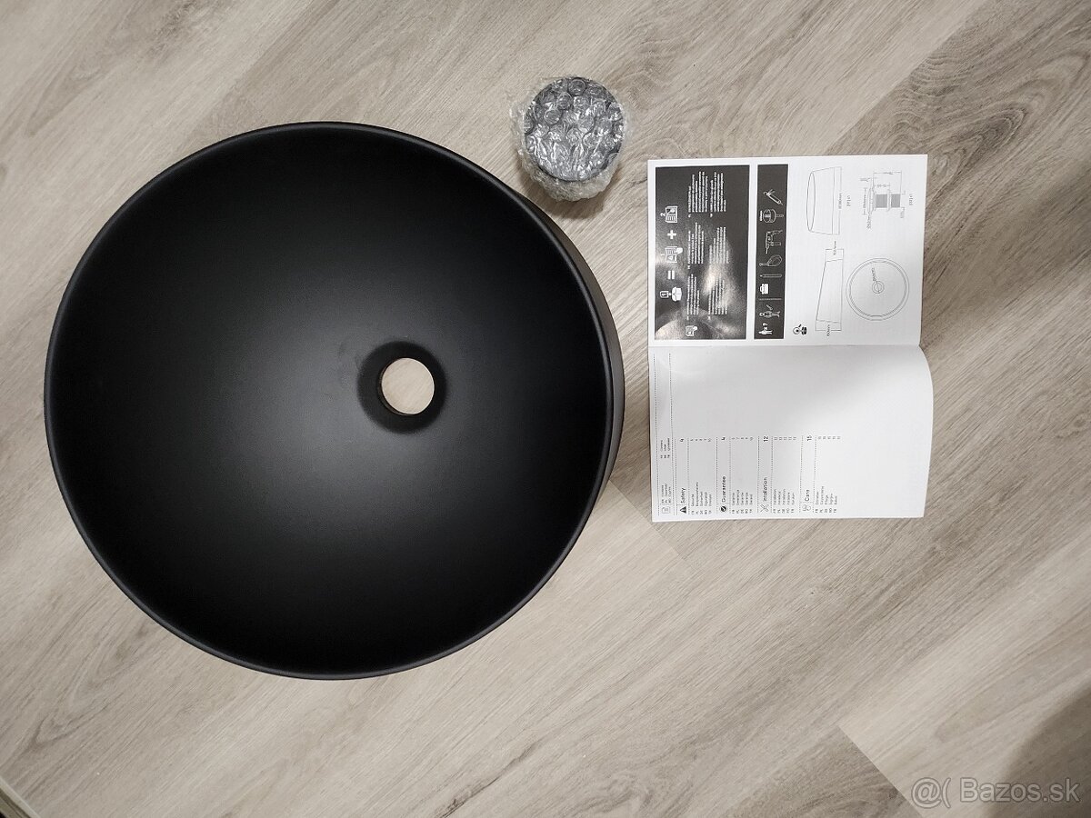Predám nové len rozbalené čierne matné umývadlo s priemerom 38cm. Presné rozmery sú na foto.