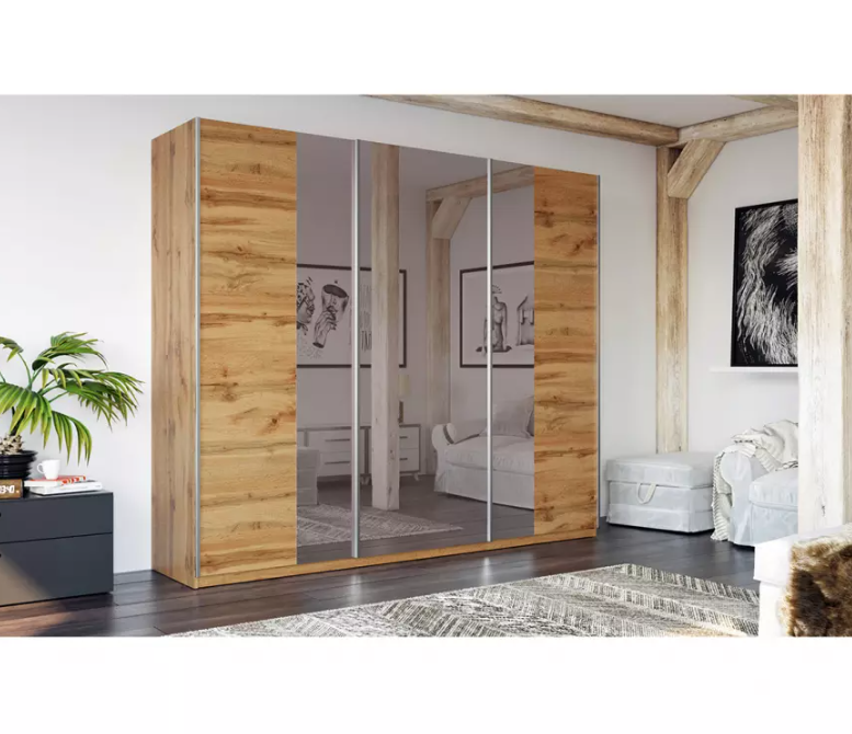 Predám novú skriňu v pôvodnom balení, v prevedení dub wotan s posuvnými dverami, so zrkadlom.