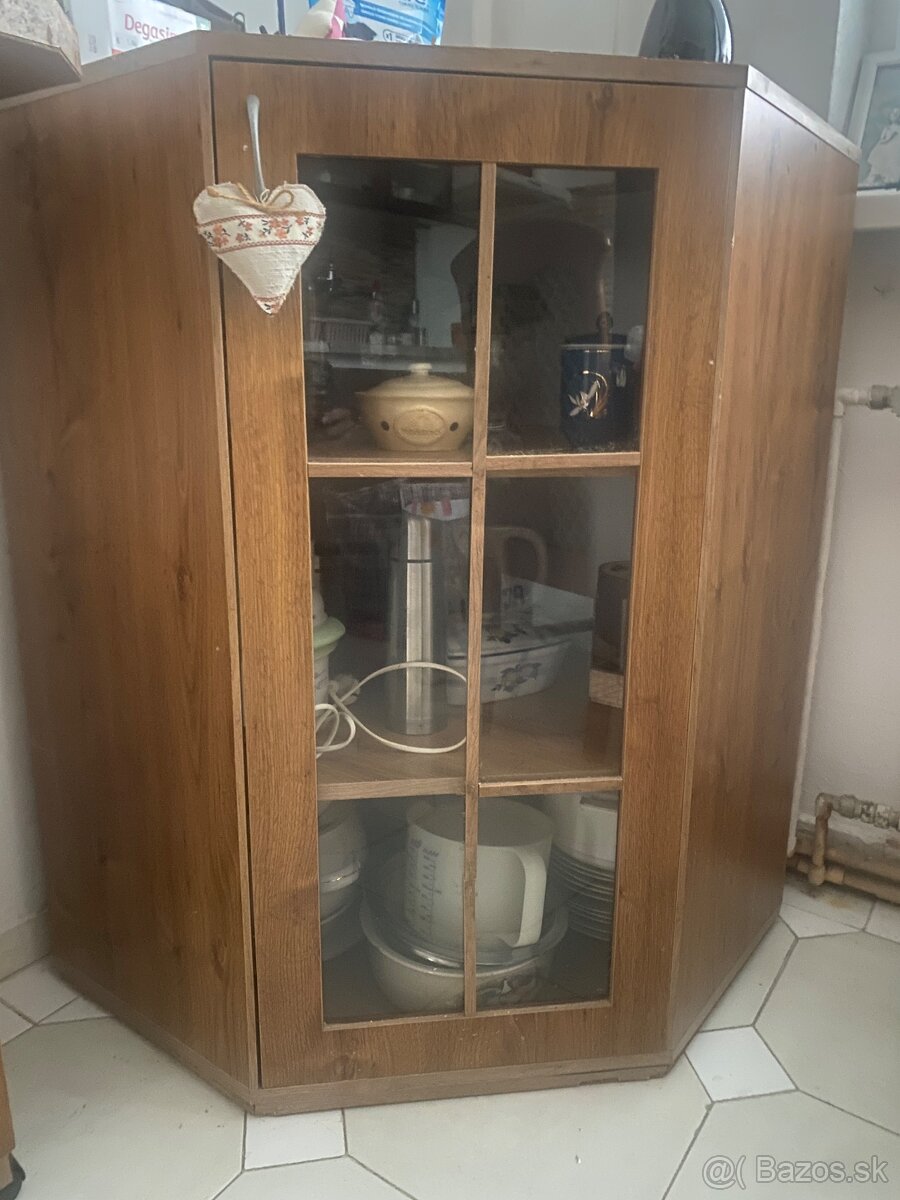 Predám presklenú skrinku do rohu v dobrom stave , vnútri 3 police