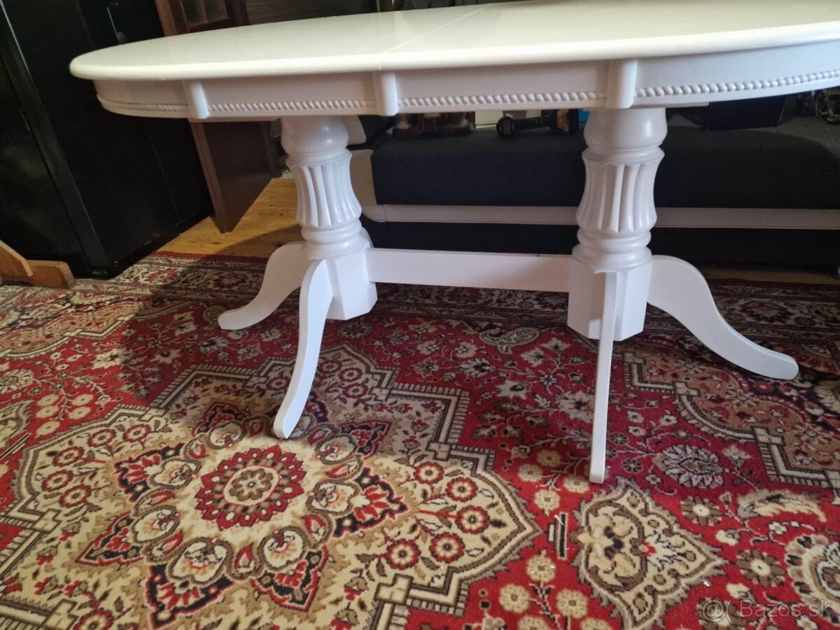 Predám biely roztahovaci jedálenský stôl, rozmer Výška 77, šírka 90, dĺžka 15O,po roztiahnuty 190. Stôl je ako nový.