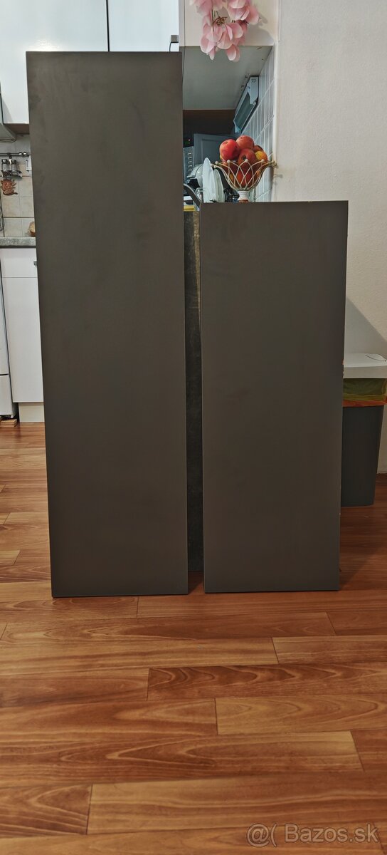 Predám dve šedé police v dobrom stave nikdy nepoužité vhodné na navrtanie do stien od tehle alebo kvadru sadrokartón neodporúčam lebo sú pevné a ťažšie.