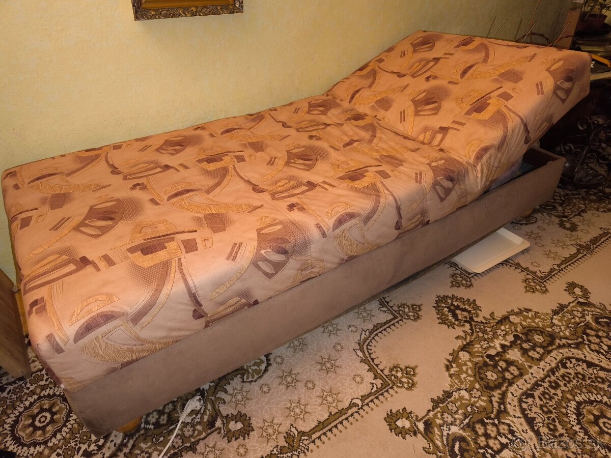 Predám peknú, zachovalú posteľ s úložným priestorom a polohovateľnou opierkou hlavy. Dlzka 2 metre. Posteľ sa nachádza v Poprade blízko centra a nemocnice. Je len na prvom poschodí. Cena 39 eur.
