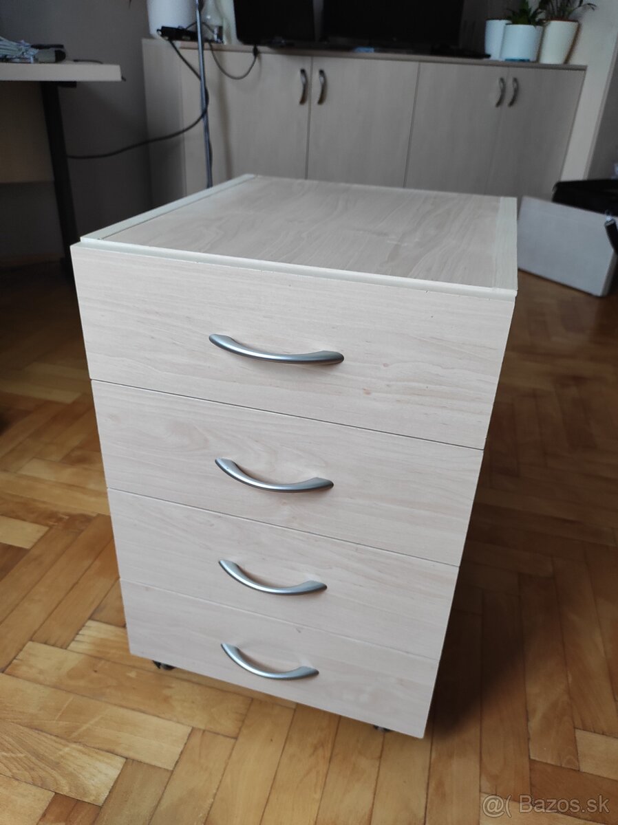 Predám kontajner k pisaciemu stolu. Odtien Breza. Šírka 40cm, hlbka 45,5 cm, vyska s kolieskami 61 cm, bez koliesok 56cm. Osobný odber Kosice Terasa