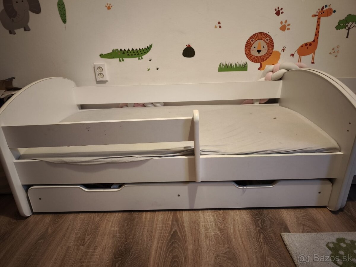 Predám detsku posteľ, rozmer 140x70. Tak ako na foto (posteľ, matrac, rošt, výsuvný šuflík, zábrana).