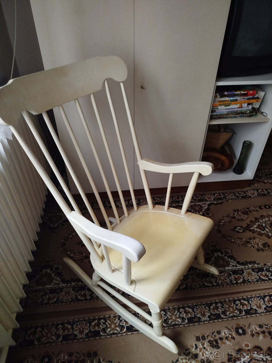 Ponúkam krásne masívne hojdacie kreslo. Odhadovaný rok výroby 50 roky/ 20 storočia. Kreslo je bez poškodenia. Farba biela, treba ho dobre pelešiť. V prípade záujmu pošlem viac fotografií alebo video