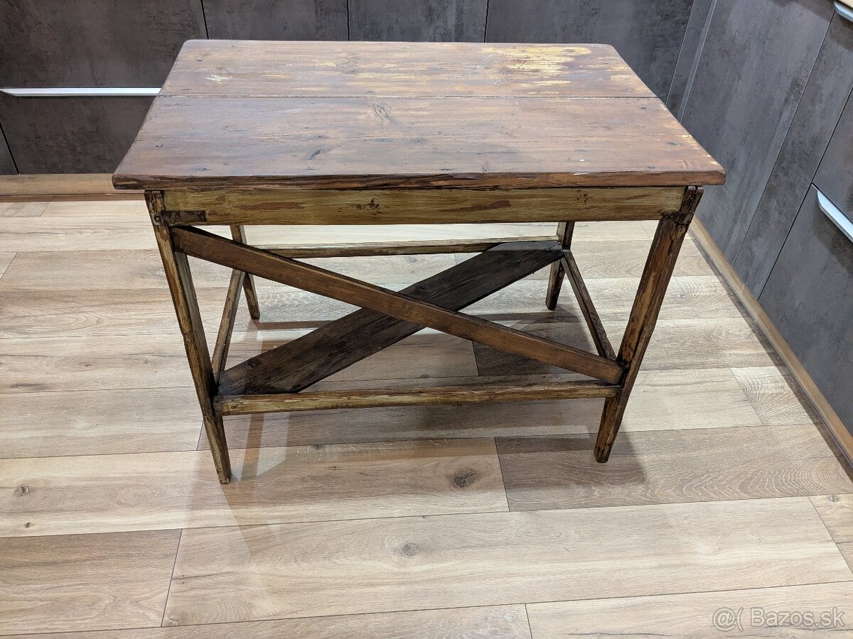 Predám masívny drevený stôl v rustikálnom (farmárskom) štýle s pevnou X-konštrukciou.