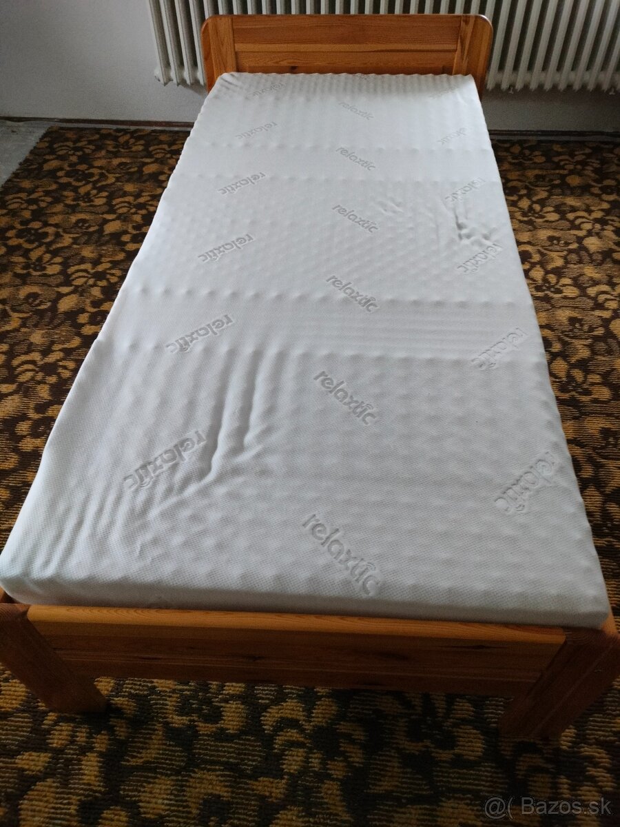 predám drevenú posteľ s matracom, takmer nepoužívanú vhodnú do detskej alebo študentskej izby, rozmery 90x200 cm