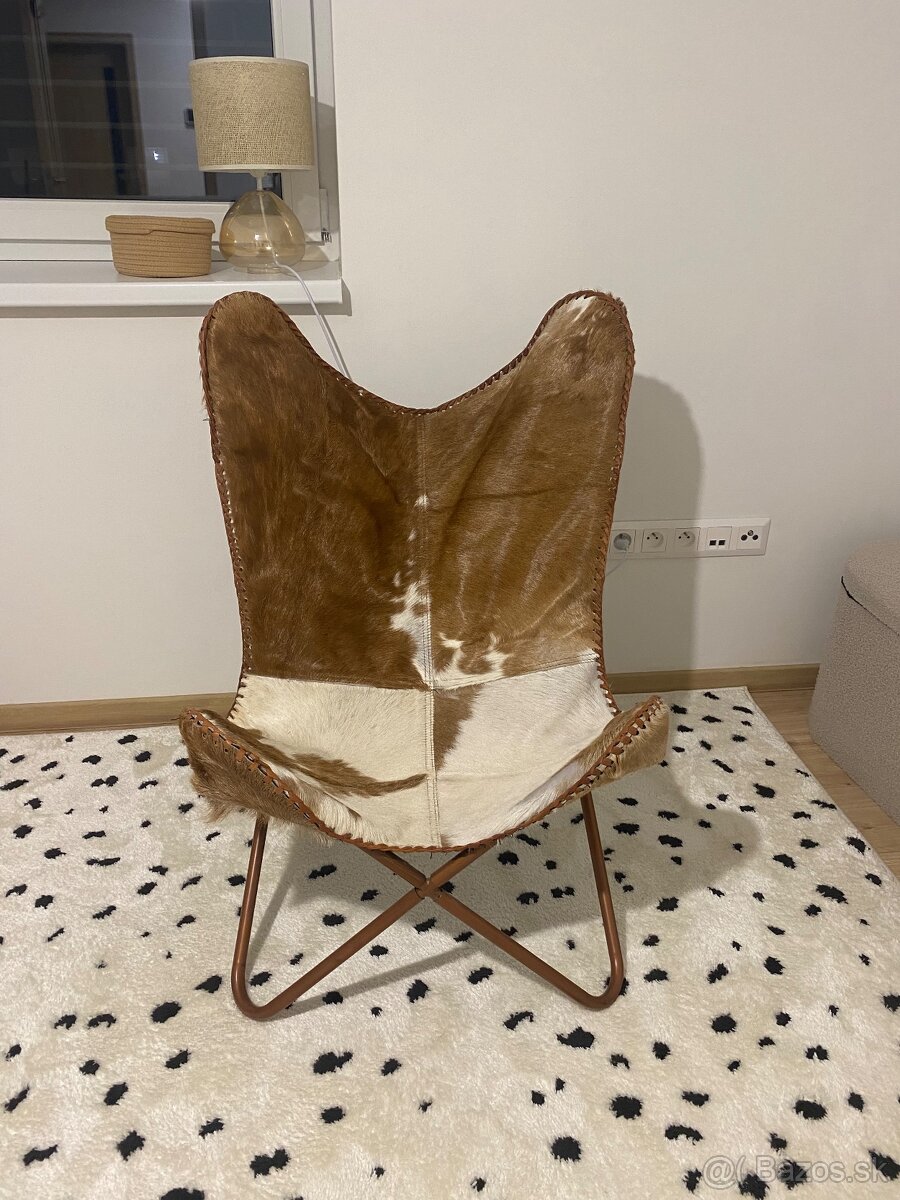 Posuvam dalej kreslo vyrobene z kravskej srsti
