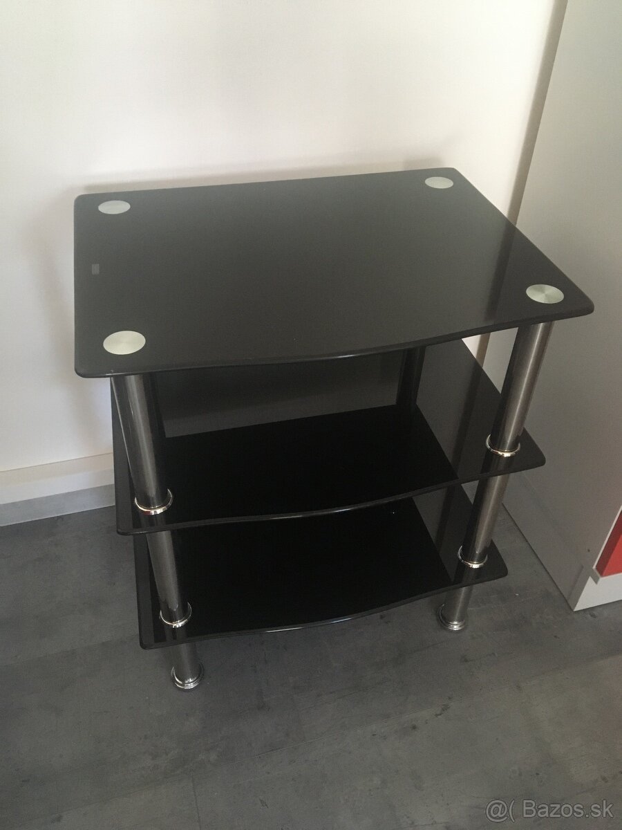 Predame skleneny TV stolik pouzivany v kancelarii. Bez poskodeni, ako novy. Rozmery na fotkach.