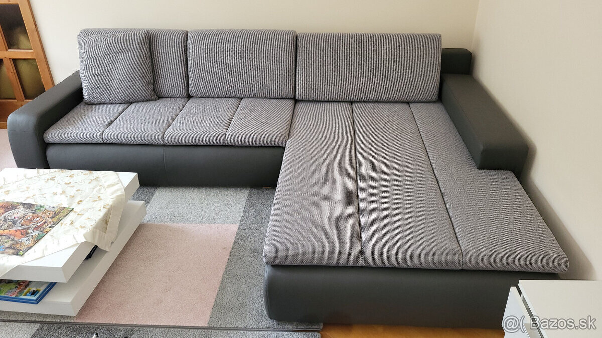 Moznost poskladat v tvare lave L, a v tvare prave L Rozmry: 300 x 210 x 85 cm, Farva siva kombinacia látka / ekokoža v zachovalom stave,
