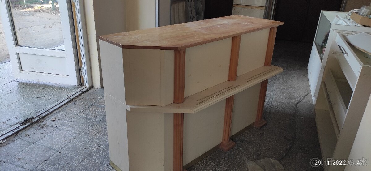 Predám barový pult s regálom. Regál ma sklenené police, prevedenie: masív