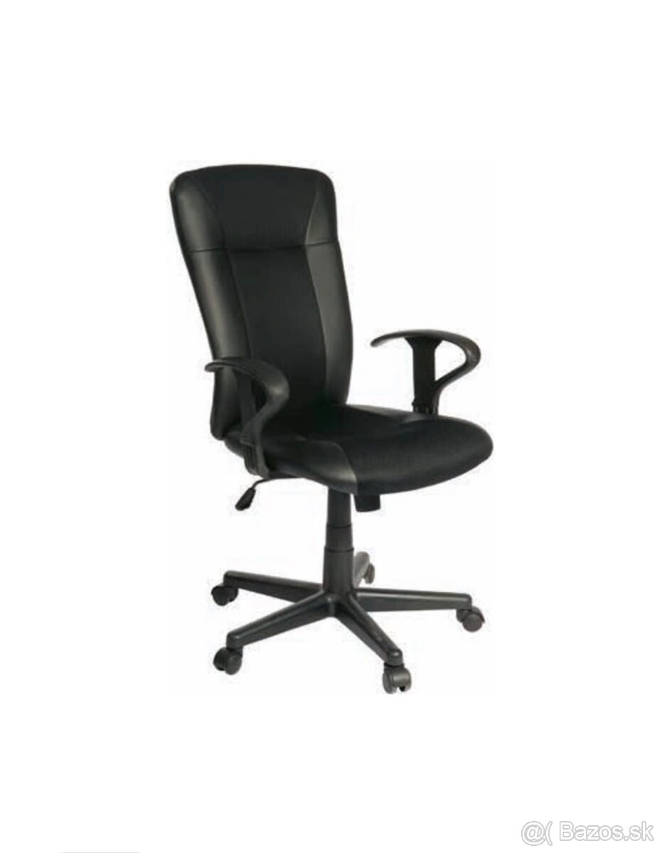 polstrovaná kancelárska stolička s koženým vzhľadom a sieťovinou na sedadle a chrbte.