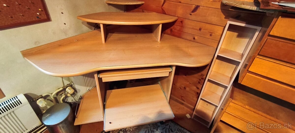 Predám,multifunkčný rohový stolík pod PC, veľmi univerzálny a nepoškodený, veľmi pevný a nerozheganý, plne funkčný.