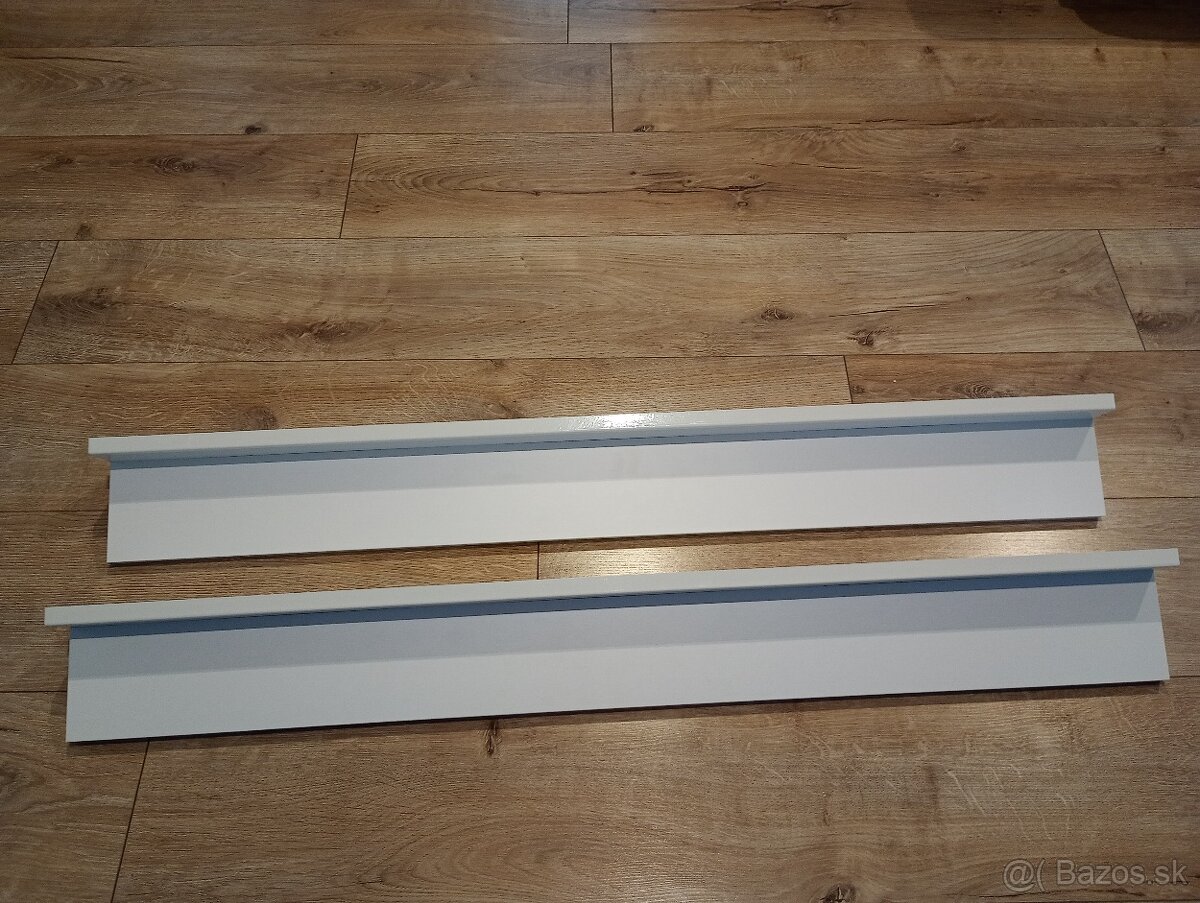 Predám dva kusy závesnej police. Rozmery 100x10 cm. Iba oba kusy spolu. Sú bez poškodení. Cena spolu 10 eur + poštovné, príp. osobný odber v Martine.