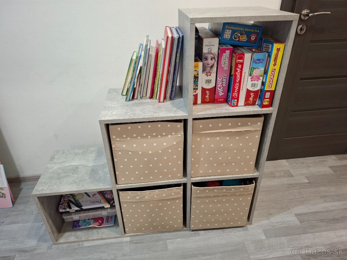 Bol využívaný ako regal na boxy na hračky. Predávam bez boxov a hračiek.