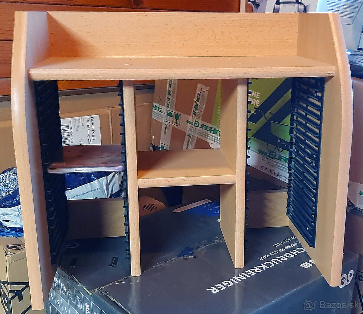 Predám zachovalú ešte funkčnú poličku na 40 CD. Farba buk. Rozmery poličky: Výška 44cm, Dĺžka 50cm, Šírka 26cm. Najlepšie osobný odber.