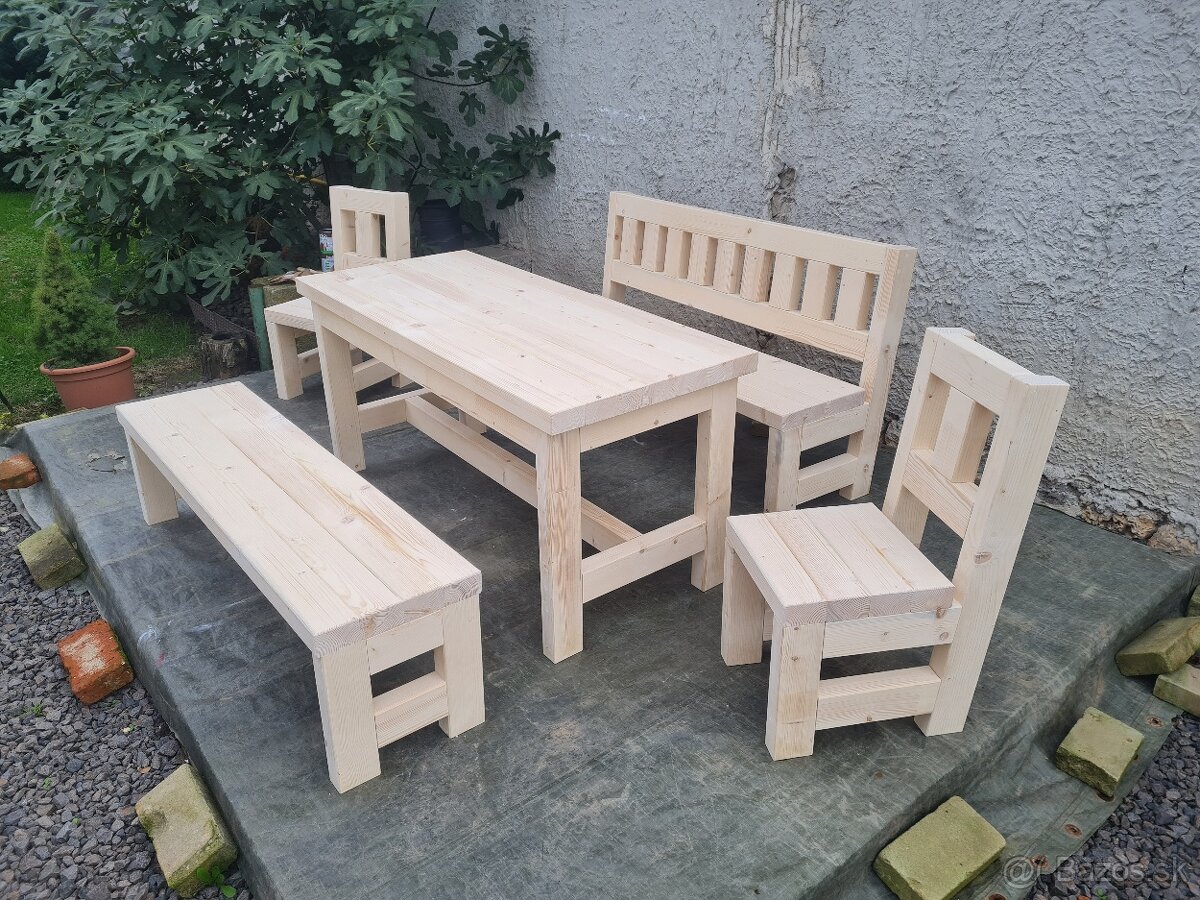 Masívne sedenie je vyrobené z kvalitného masívneho dreva, ktoré zabezpečuje jeho odolnosť a dlhú životnosť. Sedenie sa vyznačuje elegantným dizajnom, ktorý skombinuje moderné a tradičné prvky, čo ho robí vhodným do rôznych interiérov/exteriérov