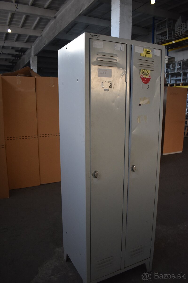 DLOCKER MB 2 - Ponúkame Vám na predaj 2-dverovú kovovú šatníkovú skriňu. Skriňa bola používaná a preto na sebe javí niekoľko známok opotrebovania, ako napríklad preliačiny, či miestami hrdzavé miesta. Skrinka je na nožičkách, čo znamená že pod ňou jednoducho poupratujete. Ponúka Vám bohatý priestor, či ju už využijete v šatniach na školách, vo firmách alebo v dielni, či vo Vašej garáži. Skriňa je kvalitná a za dostupnú cenu.