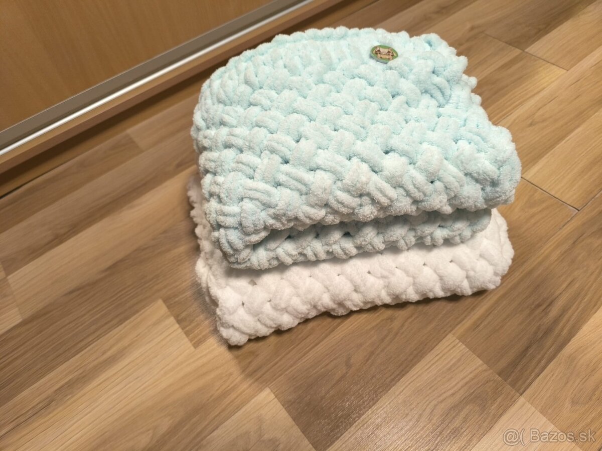 Predám hačkované dečky ručne pletené pre deti..Sú v vlny puffy/veľmi jemná a príjemná vlna/. Biela rozmer 70x80cm. Slabozelená 60x90cm. cena 30€/ks. Uprednostňujem osobný odber.