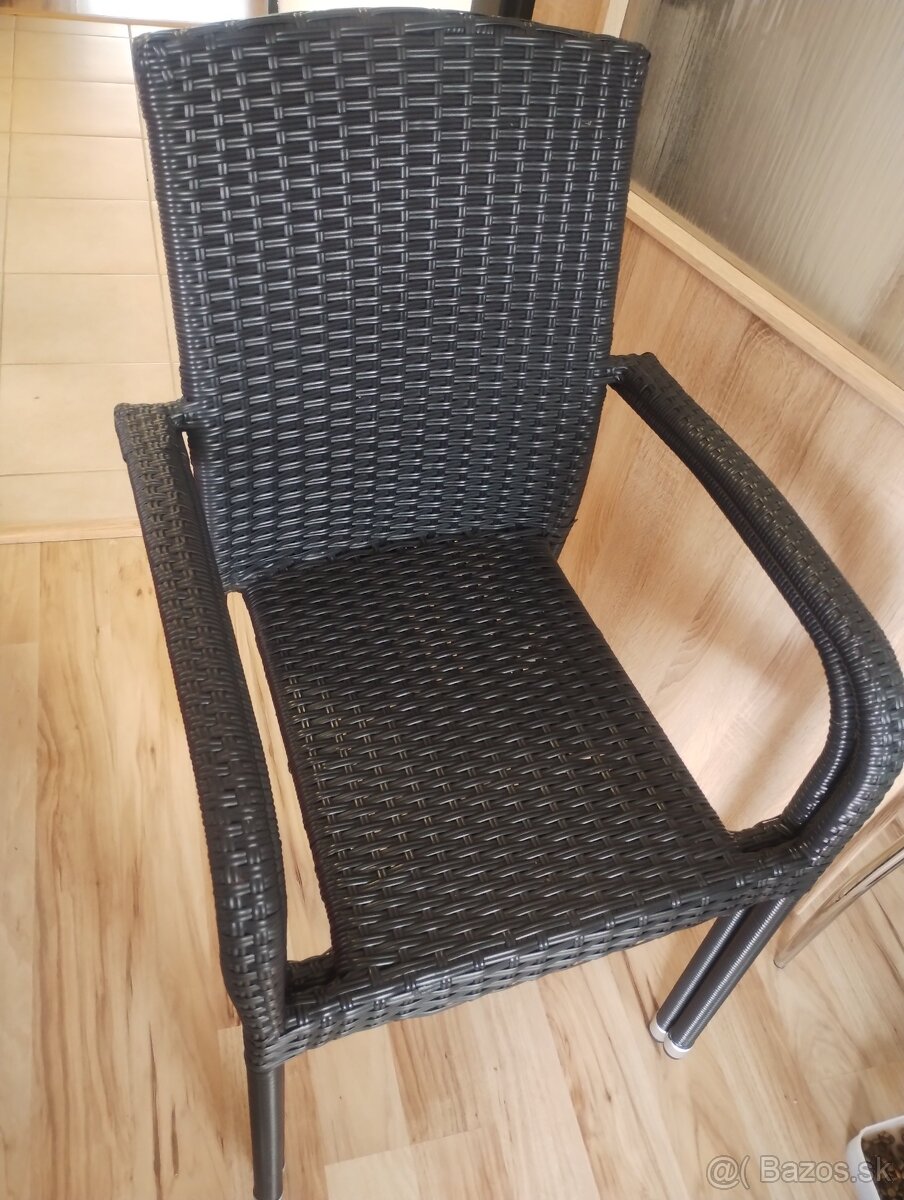 Predám dve ratanove tmavohnědé stoličky stohovatelne,ako na foto.Cena za ks .