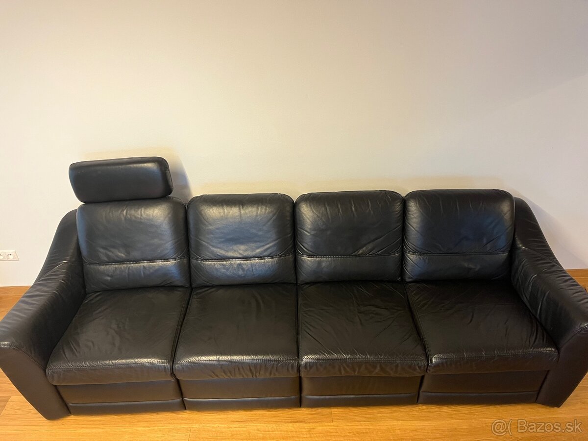 Predám čiernu koženú sedačku, 4 miestna, rozmer 280 x 95 cm. Vo veľmi dobrom stave, pravidelne udržiavaná. Vek cca 6 r. Možno variabilne rozobrať , bez úložného priestoru.