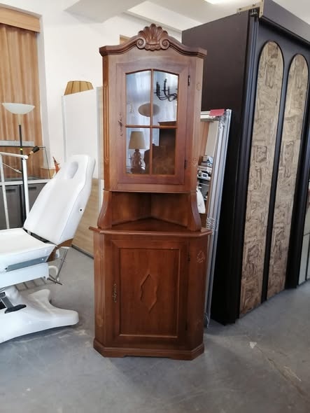 Rohová vitrína, zložená z dvoch častí,masiv, výška 199cm, roh 55x 55cm, šírka vpredu 78cm, len volat 0950641533, po dohode viem doviezt okolie Ga, SC, TT