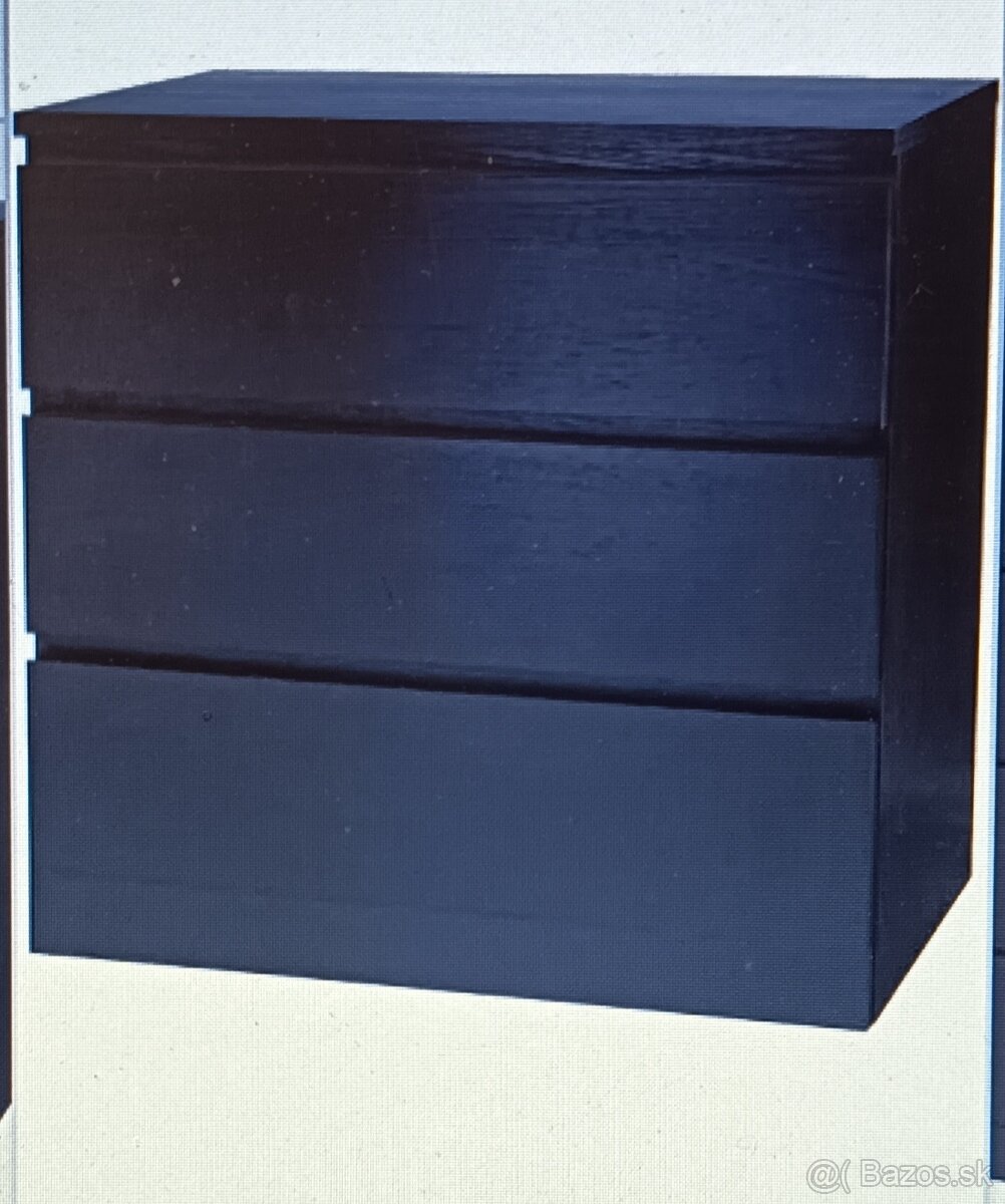 Preda čiernu komodu malm, zachovalú, bežné známky používania.