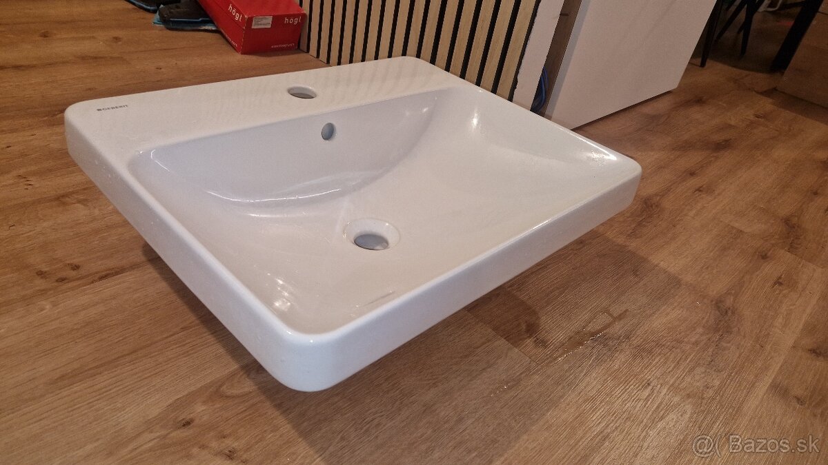 Umývadlo Geberit používané cca 1 rok, glazúra bez škrabancov a poškodení. Rozmer 44,5 x 54,5 x 18 cm.