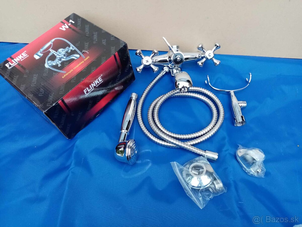 retro kúpeľňová vodovodná chrómová batéria so sprchou rozteč dier 150mm.