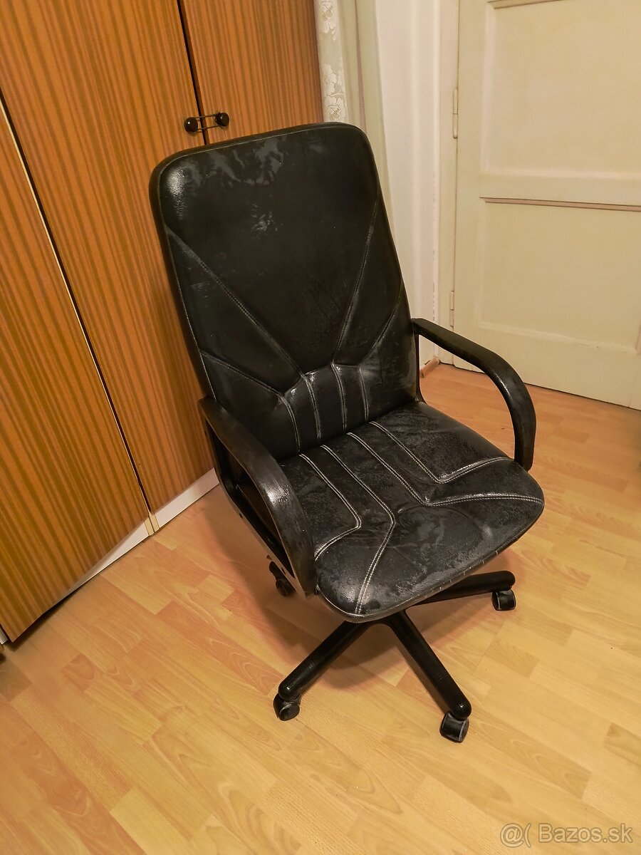 Otočná kožená kancelärska stolička - [17.12. 2025]Predám zachovalú koženú aj látkovú otočnú sedačku minimálne používanú, prevažne ako vešiak na šaty, šírka , hĺbka CM, výška operadla CM. Cena dohodou.Osobný odber, zľava. Viacero ks a druhov.