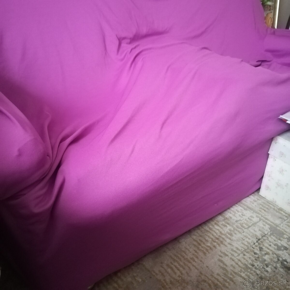 Predám naťahovací cyklamenový poťah na pohovku gauč s hrubou gumou - 4€. Sedacia časť nenatiahnutá dl. cca 150cm + cca 20cm sa natiahne + k tomu na 2 opierky. Názorne na 2 kreslách o šírke 90cm. Pokryje aj zadnú časť gauča. Čistý opraný. Kont. mailom.