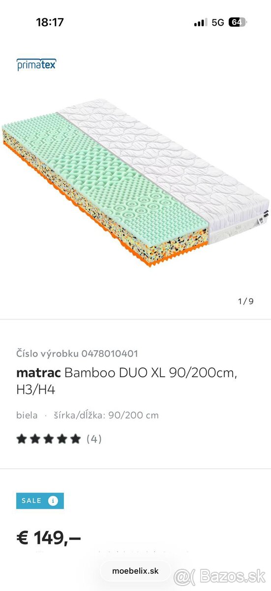 Zdravím predám matrac kupovaný v moebelixe dňa 22.12.2025. Tvrdosť h3/h4.