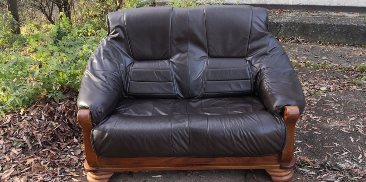 Kožená sedacia súprava(dvojsedačka) s masivnym drevom