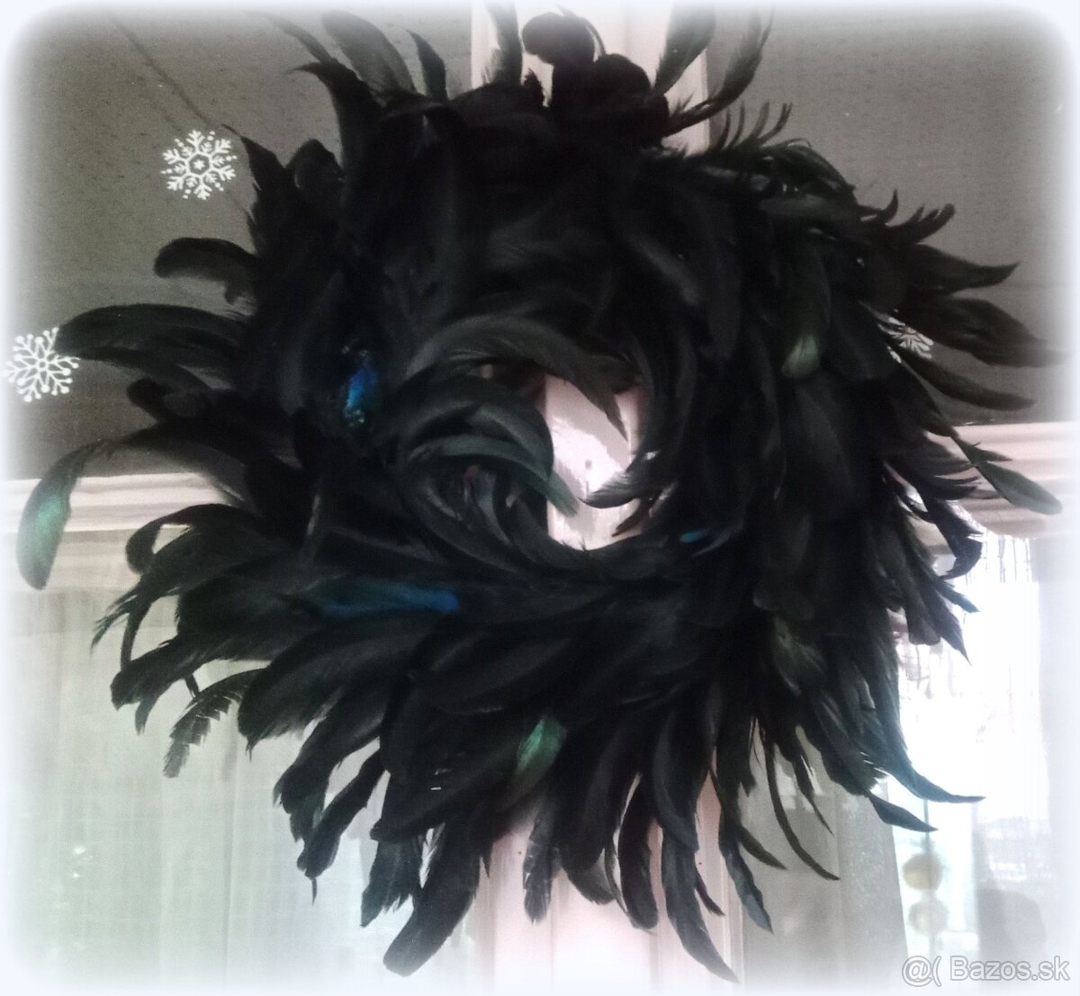 Veľký veniec z čierneho kohútieho peria
