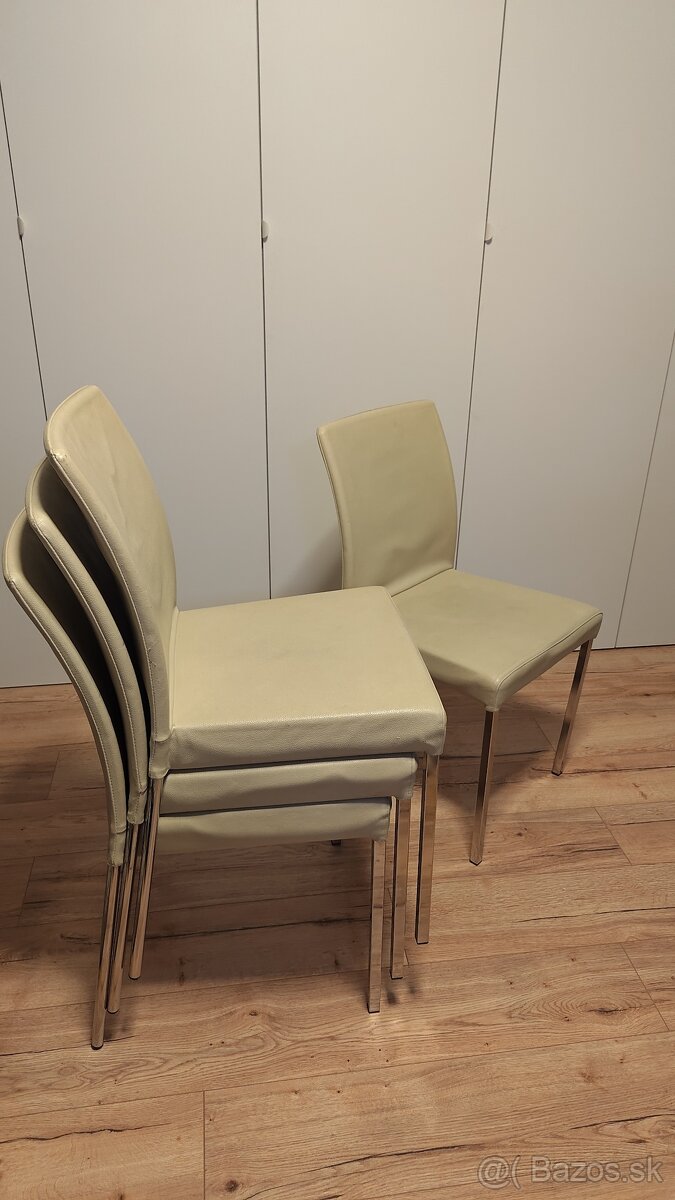 Predám kuchynské stoličky - [23.12. 2025]Predám tieto 4ks kuchynské stoličky z dôvodu zmeny štýlu zariadenia kuchyne. Stoličky sú pevné, komplet, akurát na koženke vidieť, že miestami odpadáva, ale tento vizuálny nedostatok spoľahlivo vyriešil dobrý poťah, ktorý je na všetkých štyroch stoličkách. Cena s poťahom 4x15€.
