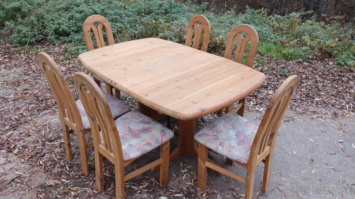 Celomasivny rozkladací stôl+6 ks masivnych stoliček