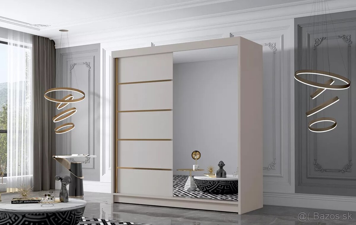 Ponúkam na predaj, novú elegantnú šatníkovú skriňu s zrkadlom na celej ploche.