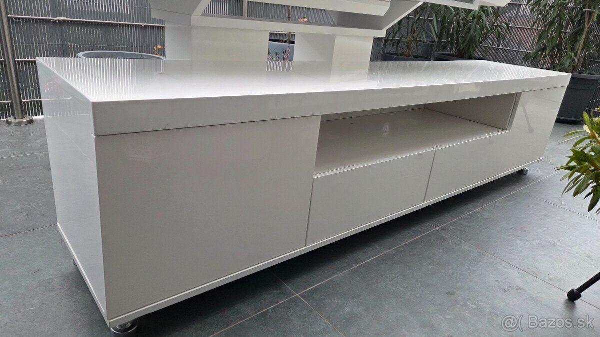 Komoda pod TV - [15.12. 2025]Predám TV stolík, 160 CM šírka x 48 CM z 40 CM výška. Dub biely lesk -dyha. Biela dyha na šúfliku popukala. Cena 50 €