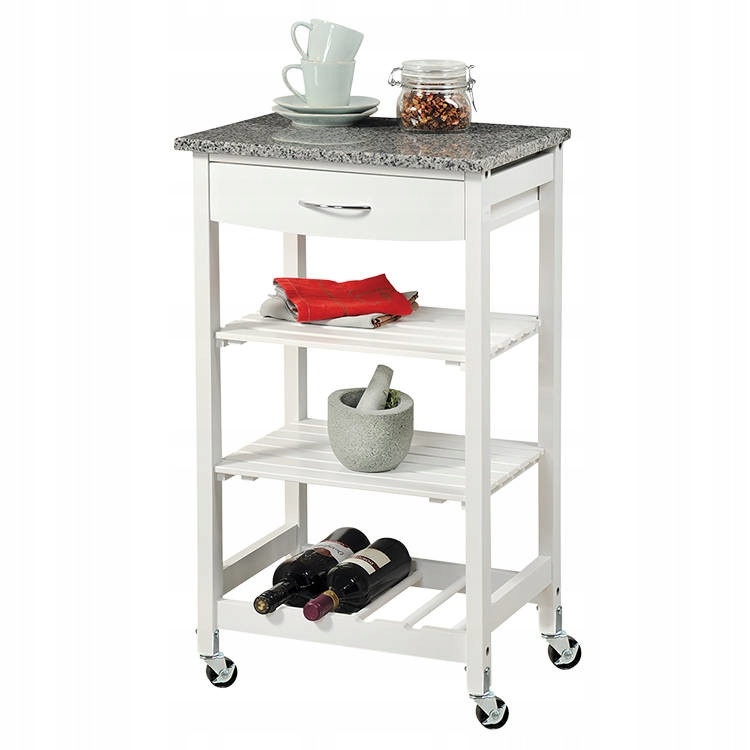Ako nový, bez známok používania. Pojazdný kuchynský regál (s kolieskami 4x). Kvalitný výrobok, (v.š.h.): 76x37x37 cm. Momentálne rozložený. Výbava: zásuvka (1x), 2 vkladacie poličky a odkladací priestor na 3 fľaše (1x). Vrchná doska - výrobcom lepená fólia. Dôvod predaja: už ho viac nepotrebujem. Cena je 85 EUR a je pevná. Ak inzerát je zverejnený = ešte aktuálny. Len vážni záujemcovia!!! Telefónne číslo je vymyslené. Kontaktujte ma prosím prostredníctvom mailu.