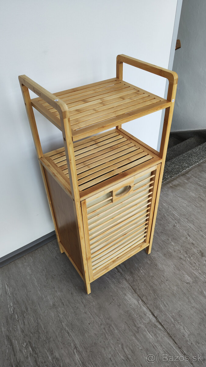 Táto šikovná polica na bielizeň s dvomi policami v ktorej si môžete uložiť vašu bielizeň a mať tak poriadok vo veciach. Priestorovo úsporný a sklopný kôš na bielizeň ktorý sa dá navyše vybrať a zjednoduší Vám presun oblečenia k práčke. Dve police poskytujú dostatok úložného priestoru. Tu si svoje miesto nájdu uteráky alebo kozmetika. Stabilnú poličku vyrobenú z kvalitného prírodného bambusu je možné zaťažiť do 10 kg.