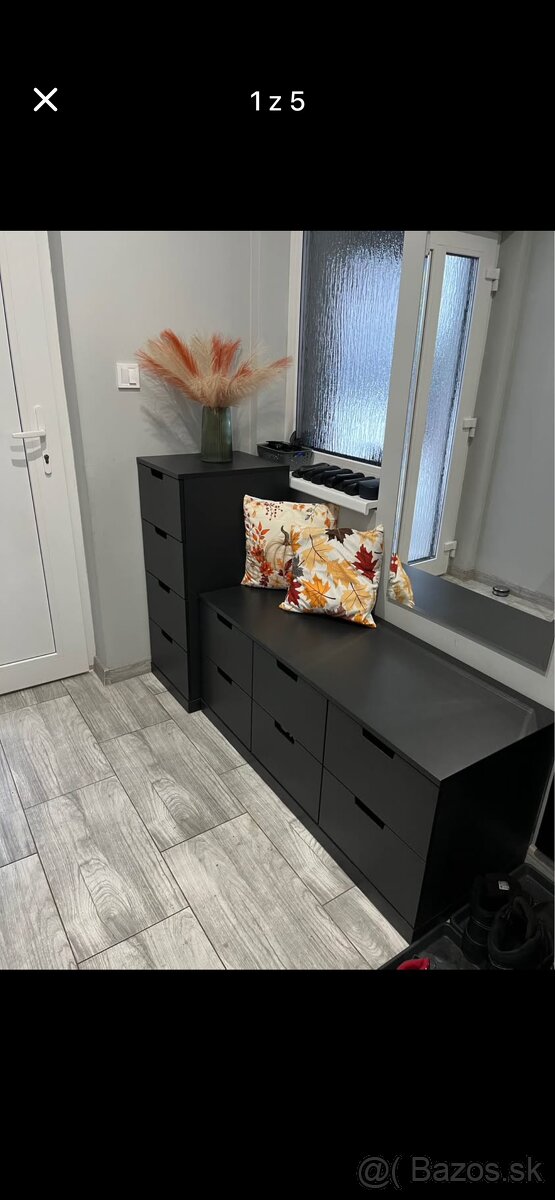 Na predaj dve skrinky v ciernej farbe Ikea nordli. Kvalitny material - ziadna tenka drevotrieska. Obe skrinky top stav, ziadne skrabance ci opotrebenie. Su ako nove. Dovod predaja - dali sme si urobit na mieru vstavanu skrinu. Cena vyssej skrinky 120 e, cena nizkej skrinky 130 eur. PC cena jednej skrinky bola 269 eur. Osobny odber Liptovska Stiavnica. Pri vzati oboch skriniek spolu je cena 230 eur.
