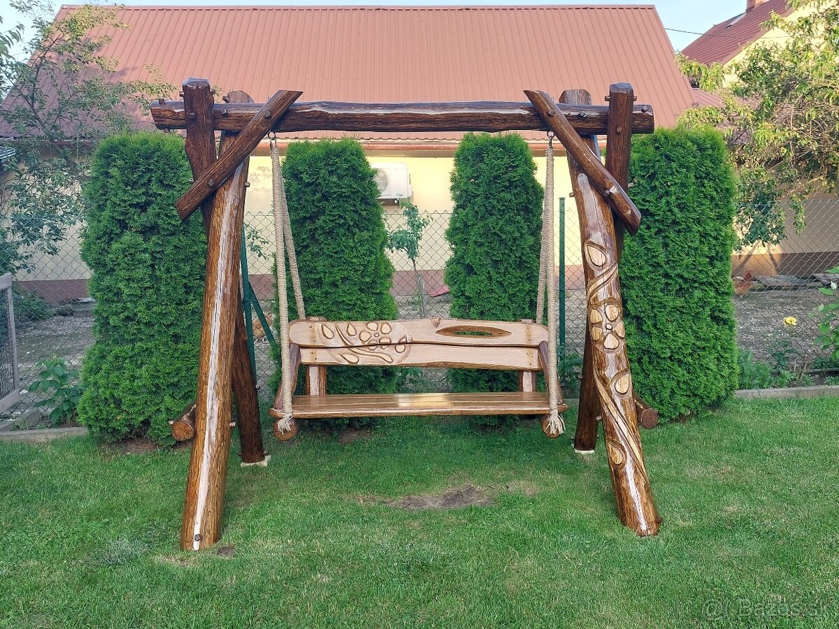 Drevená hojdačka. Dubová hojdačka. Záhradný nábytok.