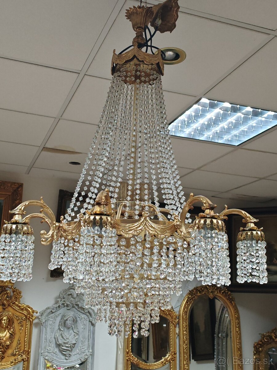 Predám krištalovy starši luster v empirovom štýle swarovski krištal, mosadzné ramená a zdobenia 100cm vyška x 70cm priemer