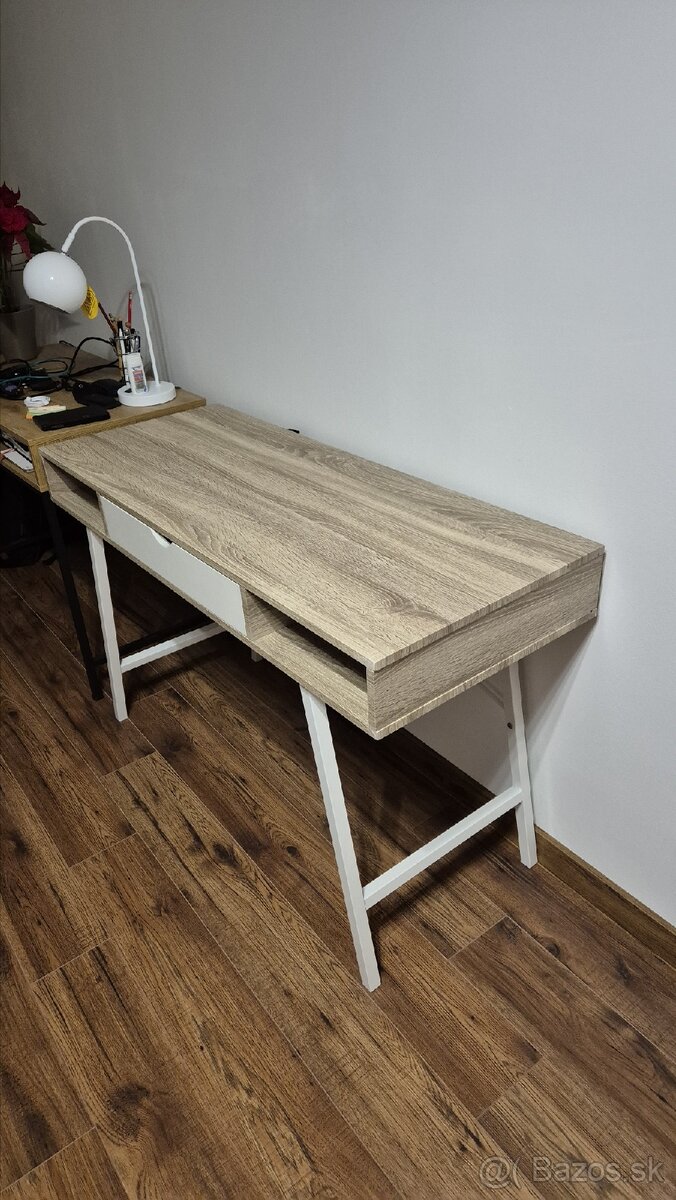 Predám písací stôl bez známok poškodenia alebo opotrebenia. Šírka: 48 cm, Dĺžka: 120 cm, Výška: 76 cm. Len osobný odber.