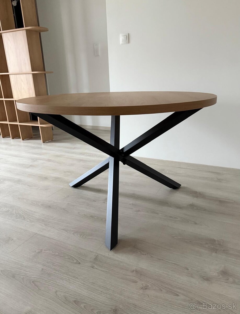 Predám úplne nový nepoužívaný okrúhly jedálenský stôl o priemere 120 cm, vyrobený na mieru v kuchynskom štúdiu Sýkora Materiál: drevo - dub prírodný, konštrukcia kovová, pôvodná cena 530 eur. Predávam z dôvodu nevyhovujúcej veľkosti.