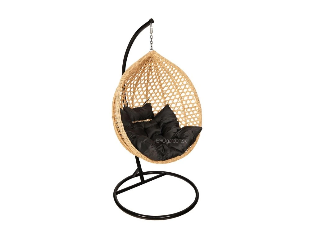 Ručne pletené na oceľovej konštrukcii so stojanom a sadou vankúšov. Je to veľmi pohodlný kus nábytku, vďaka ktorému budete relaxovať v záhrade, na terase alebo v pohodlí domova. Kôš je vyrobený z vysoko kvalitného technoratanu. Kreslo je odolné proti poveternostným podmienkam.