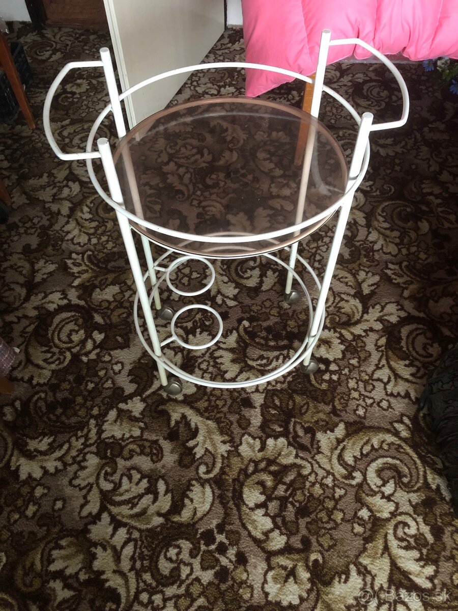 Predám barový železný vozík, výška 78 cm a priemer kruhu je 44 cm. Na vrchu je plexisklo
