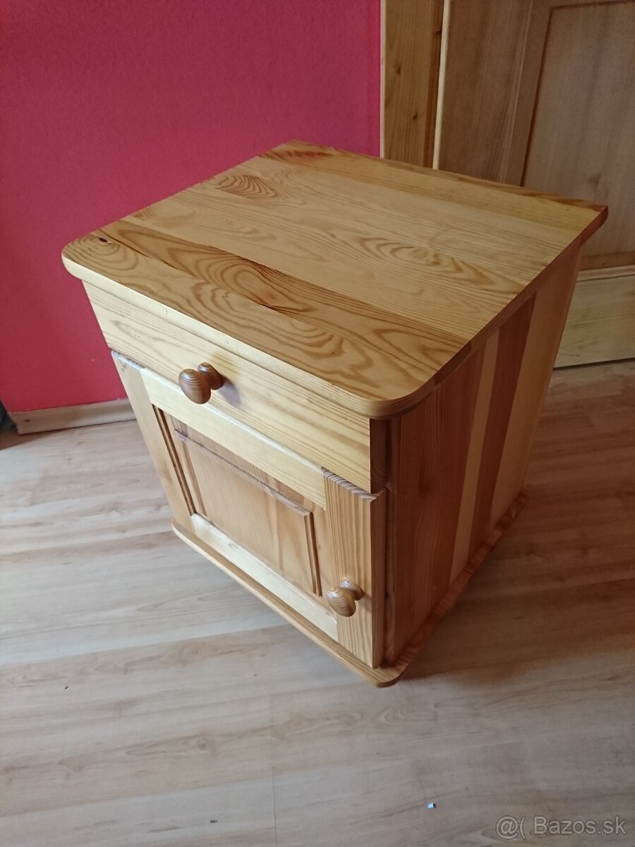 Predám drevené nočné stolíky. Rozmery (š x v x h) 42 x 70 x 35 cm. Farba dvierok, korpusu: imitácia svetlé dreva borovica. Matný povrch. Osobný odber alebo dohodou dovoz na trase Púchov - Kysucké Nové Mesto. Uvedená cena je spolu za 2 kusy. Dá sa kúpiť aj samostatne jeden kus (cena za kus/ 40,-€).